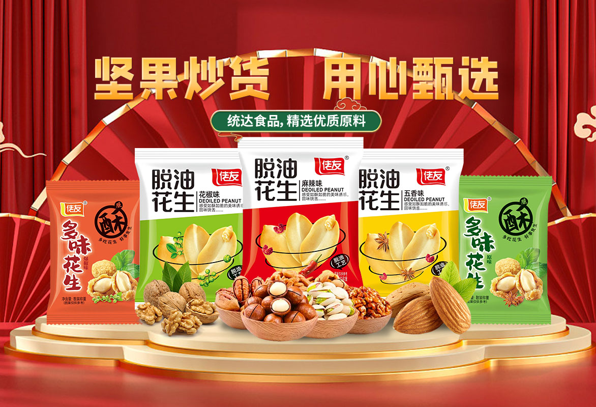 洛陽市統(tǒng)達食品有限公司創(chuàng)建于2013年,坐落于風(fēng)景秀麗的嵩山腳下,東依省會鄭州、隴海、焦枝兩大鐵路在此交匯,西連高速,洛界高速,縱橫東西南北,207國道,交通便利。當(dāng)?shù)丨h(huán)境優(yōu)美。經(jīng)濟繁榮昌盛,實為興業(yè)辦企,鴻運福順的好地方。少林寺,白馬寺,龍門石窟,玄奘故里等名勝古跡星羅棋布,近在咫尺,盡展千年華夏文明。  我廠是一家集生產(chǎn),研制,銷售為一體的食品加工企業(yè),總投資1500萬元,廠房占地面積5000平方米,員工100余人,其中技術(shù)人員20余人,年加工能力達1500余噸。公司以堅果炒貨為主導(dǎo),自主三大品牌:統(tǒng)達牌、紅仁館牌、佬友牌和授權(quán)品牌速達,主要產(chǎn)品有酒鬼花生系列,麻辣花生系列,香辣酥系列,果仁裹粉類系列,怪味胡豆系列,蠶豆、青豆系列等多個品類。產(chǎn)品暢銷全國各地,深受用戶好評。產(chǎn)品選自上等原料經(jīng)多次精選而制,秉承濃郁的特色風(fēng)味,保留其原材料的營養(yǎng)和原汁原味,富含不飽和脂肪酸和人體必需的氨基酸和鋅元素,不含膽固醇,黃曲霉素,不添加防腐劑、著色劑;具有濃郁獨特的香味,是真正的“從土地到餐桌”的健康食品。產(chǎn)品特點:色澤金黃,顆粒飽滿,然后經(jīng)多種工藝加精良的天然配料精制而成,鎖生產(chǎn)出來的產(chǎn)品既保持著產(chǎn)品的獨到的口味,又不失產(chǎn)品天然的營養(yǎng)成分,滋味純正,辣椒鮮紅食之麻,辣,香,酥,甜,口感獨特,食后滿口生香,欲罷不能。久食不厭,老少皆宜,居家旅游,佐食配茶,宴賓饋友之佳品,深受廣大顧客歡迎和贊揚。  我們將以精湛的工藝,科學(xué)的管理,嚴(yán)格的質(zhì)量控制,優(yōu)異的品質(zhì)保障,以誠信,創(chuàng)新,勤奮,求實的企業(yè)精神,立于強者之林,迎接新的挑戰(zhàn)。以飽滿的熱情迎接與你的合作。  本公司“以質(zhì)量求生存,以誠信求發(fā)展”歡迎有志之士加入我們的團隊,攜手共創(chuàng)美好明天!